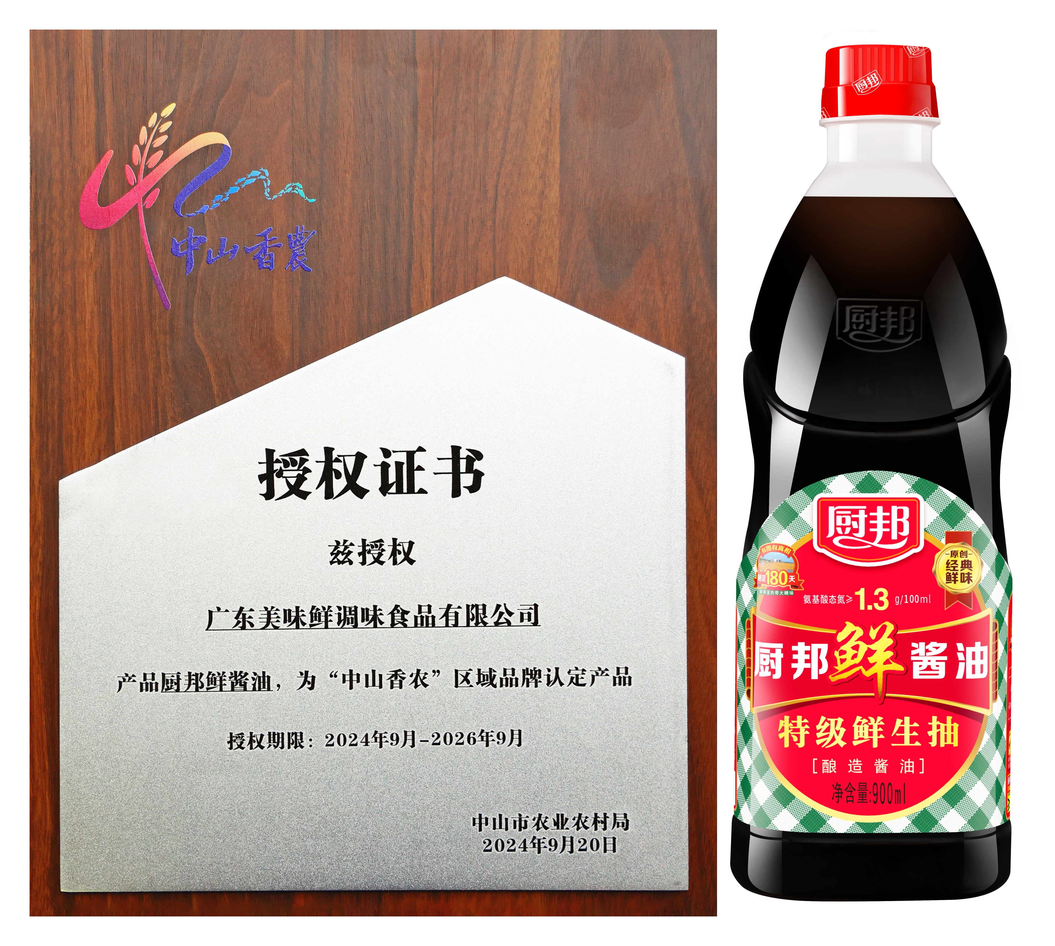 厨邦鲜酱油入选首批“中山香农”区域品牌认定产品