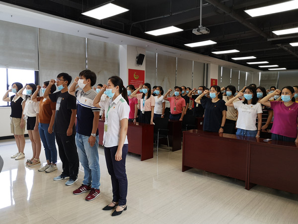 各党支部组织党员代表宣读了自己的入党志愿书,并组织党员一起回忆自己入党时的初心,结合现在自身的表现,反思自己的不足之处。讨论结束后,支部书记带领全体党员在党旗下宣誓,通过重温入党誓词,增强党员的责任感与使命感。