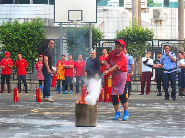 在讲述三小场所消防安全时,邓主任以图文并茂、事故分析、现场说法等方式讲解了消防安全法规、防火、灭火、逃生、警示等五个篇章。针对饭堂、三小场所的消防安全实际情况,邓主任结合办公室、宿舍用电、用火知识,介绍了易发生火灾事故的原由及危害。整个讲解内容丰富生动,贴近生活,收到了很好的教育警示效果。在培训中,邓主任还播放、讲解了近年来发生的多起重大火灾事故的实例视频,触目惊心的画面和数字使全体参训人员受到了极大的震撼,深刻认识到了“隐患险于明火、防范胜于救灾”的重要性。在灭火器材的讲解中,邓主任详细讲解小商铺、公寓楼、办公楼等工作、生活区域各种消防器材在发生火灾时的重要作用和操作使用方法,并用实操的方法让在场的每一位人员掌握发生火灾后的自防、自救以及利用灭火器材扑救初起火灾的能力。