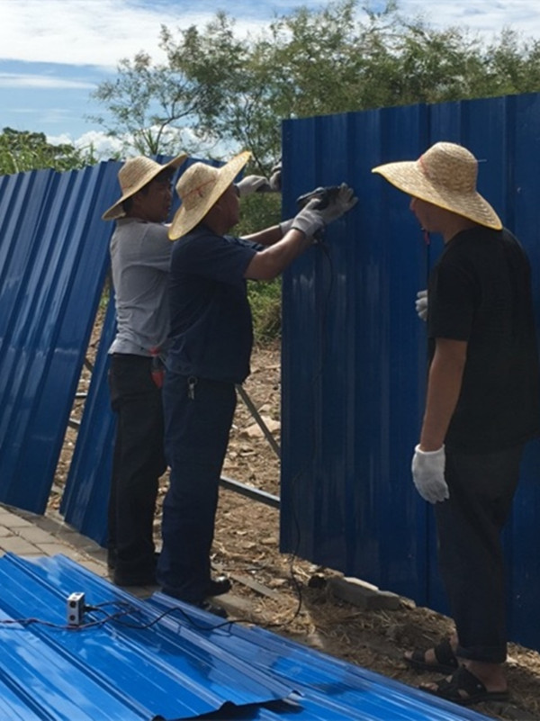 ag亚娱物业公司在创文活动中,不仅开展卫生保洁志愿工作,也积极配合火炬区文明办完成其他创文任务,其中位于中山站旁的东祥路是创文检查中最重要的主干道之一,文明办要求道路两侧业主在不到一周的时间内完成路两旁的围挡建设及公益广告上画任务。7月13日他们在接到任务后,立刻组织人员对现场进行调查,确认工作量向相关部门和领导进行沟通汇报,得到许可后立即下单采购材料、向广告公司下单进行设计。材料当天到货后,物业公司立即安排水电工程人员冒着酷暑,开始进行近150米长的围挡搭建,不到2天就圆满完成任务。同时,约450㎡的广告画亦已准备完毕,通过加班加点,在期限前一天顺利完成上画任务。