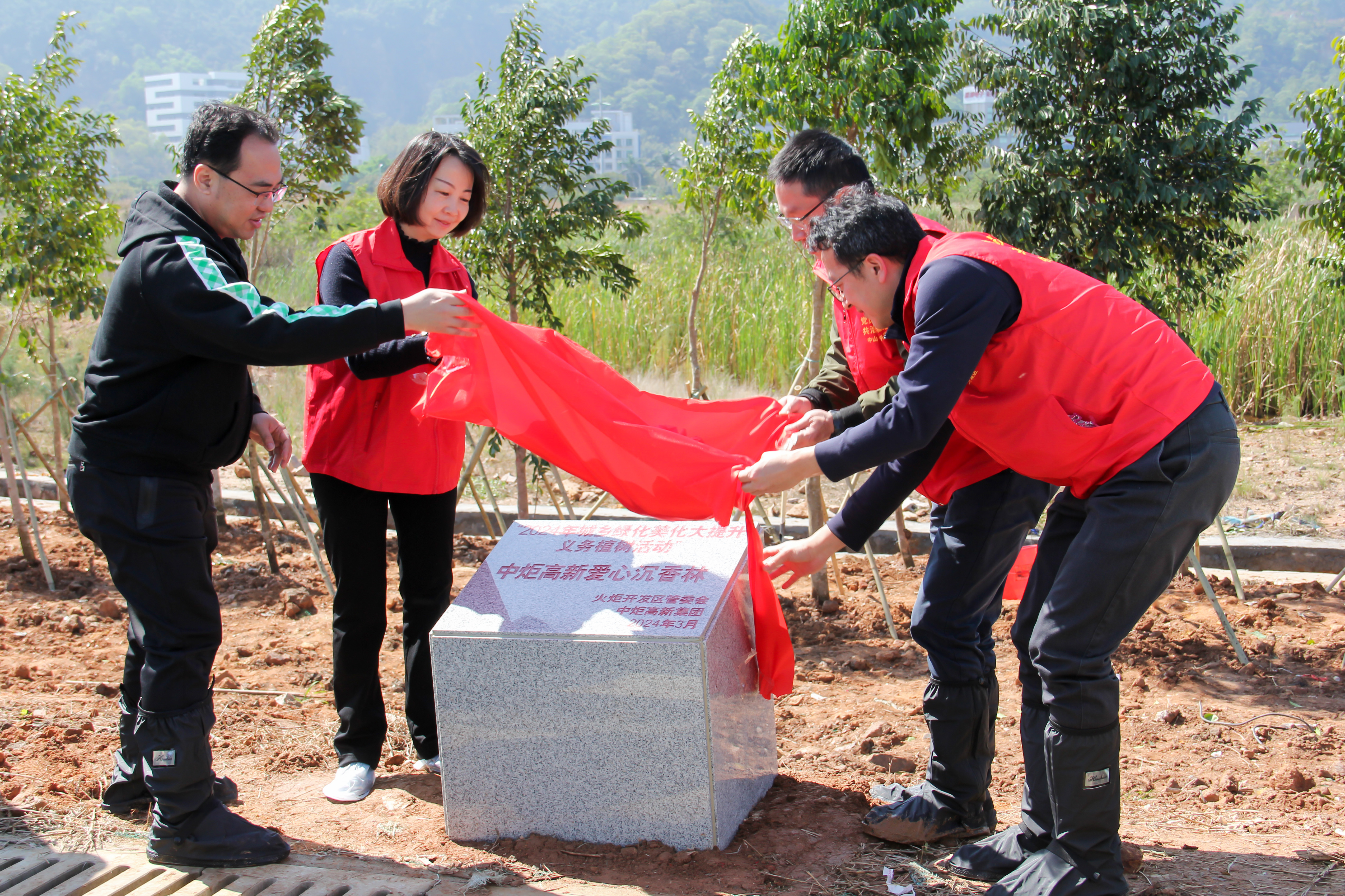 在现场160余人的辛勤劳作下,510株沉香树幼苗在沿江碧道旁迎风而立,错落有致,一派生机勃勃,植树面积达2000平方米,为火炬长围海堤沿江沉香碧道增加一道亮丽的风景。在阵阵热烈的掌声中,刘云梅副市长、余健华董事长共同为“ag亚娱高新爱心沉香林”揭幕。