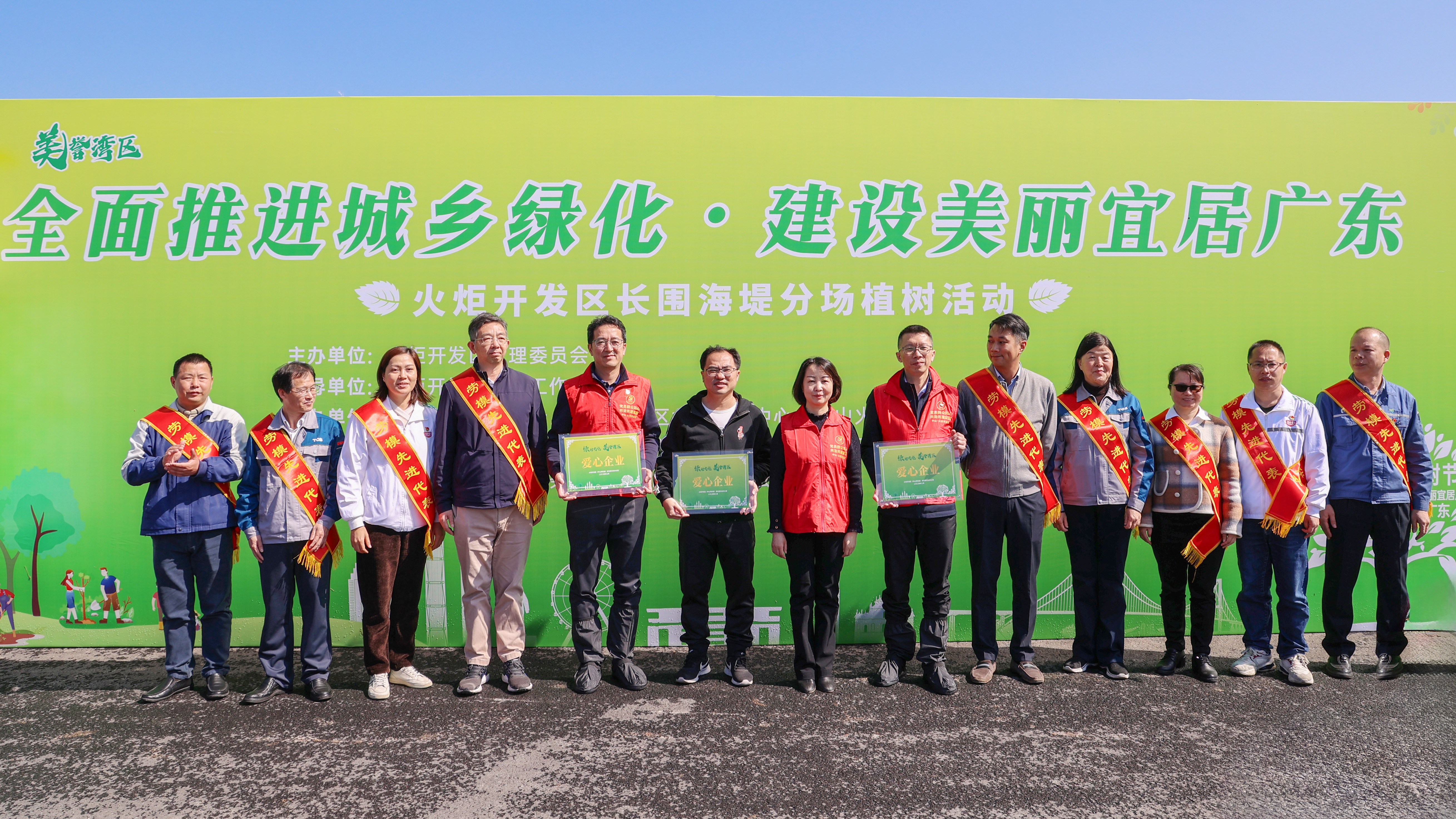 万物苏萌山水醒,东风渐暖蛰虫鸣。3月12日第46个植树节当天,火炬高新区管委会组织区党建办、中山港街道总工会、区水务事务中心、火炬公资公司、华盈投资、ag亚娱高新等单位,在火炬长围海堤共同开展“绿动火炬 美誉湾区——全面推进城乡绿化·建设美丽宜居广东”分会场植树活动。中山市副市长、火炬高新区党工委书记刘云梅、ag亚娱高新董事长余健华等出席活动。